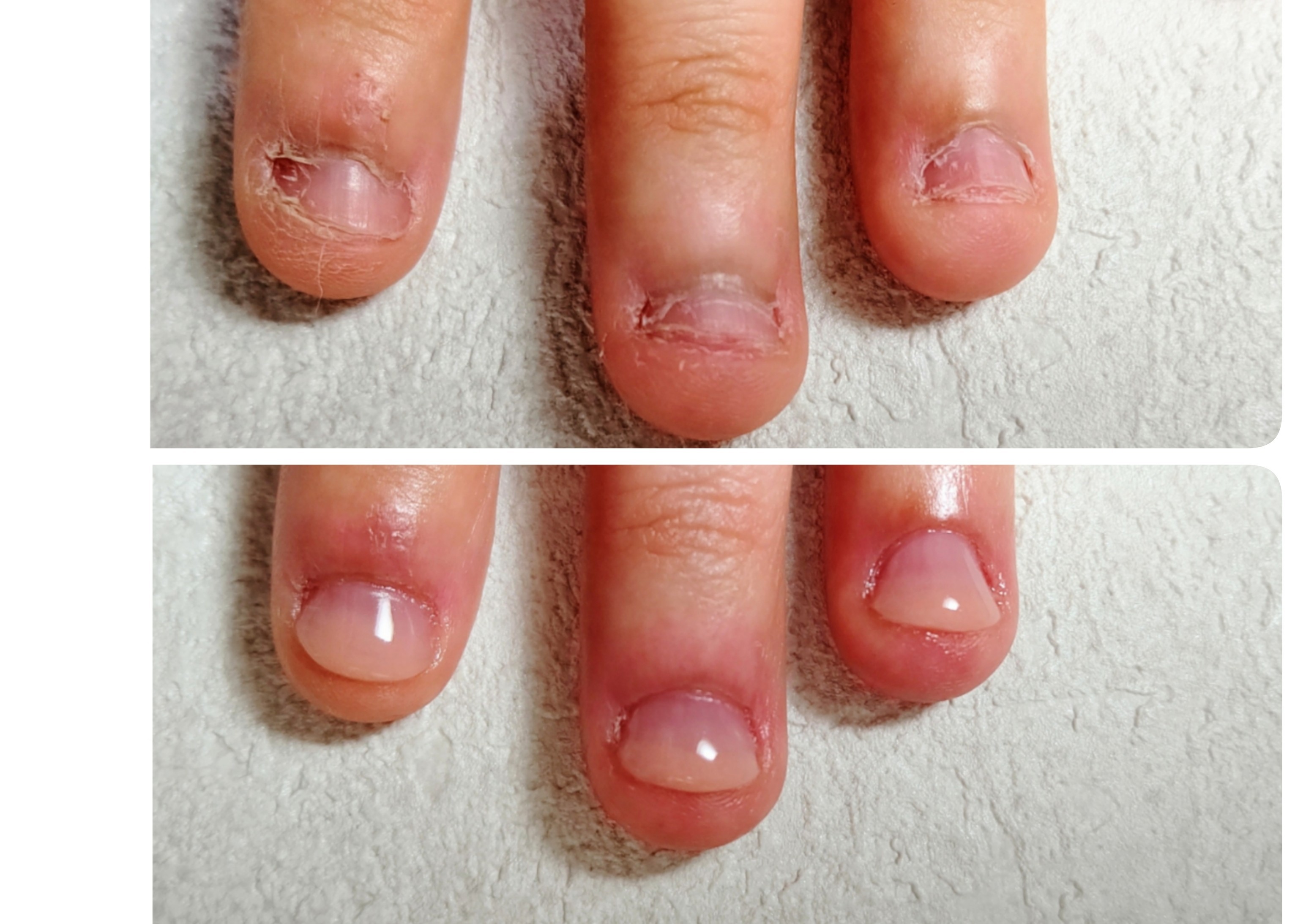 お爪だけではなくピンクの部分をしっかりと上げていく為のケアを重視したアルラの深爪矯正/自爪育成オリジナルメニューです。